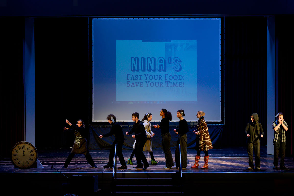 GARMISCH-PARTENKIRCHEN, DEUTSCHLAND, 18.04.2023: Theaterpremiere „Searching Momo“ des Werdenfels-Gymnasiums im Rahmen des Festivalprgramms 50 Jahre Momo.
