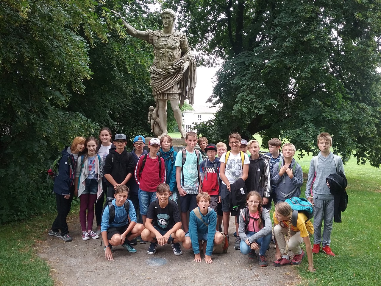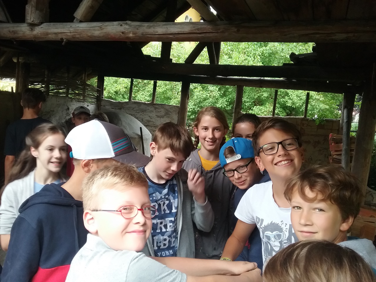 Wir passierten verschiedene Statuen, Maurerreste und sogar Überreste alter Thermen. Uns wurde auch gezeigt, wie damalige Toiletten aussahen. Zwei von uns durften darauf eine „Sitzprobe“ machen. Danach ging es in ein kleines Café, eine römische Taberna, auf dem Gelände. Dort bekamen wir ein tolles Buffet mit unseren fertig gebackenenBroten serviert und konnten unsere hungrigen Mägen füllen. Darauf folgte nun eine etwas größere Pause, welche wir zum Eisessen und Spielen nutzen konnten. Nun waren nochmals zwei Projekte angesagt. Hierzu wurden neue Gruppen aus allen vier Klassen gebildet. Entweder konnte man das Projekt „Düfte der Antike“ oder das Projekt „Spielen wie die Römer“ wählen. Bei dem Projekt „Düfte“ durften wir getrocknete Kräuter in einer Feuerschale anzünden und somit zum Rauchen bringen. Wir erfuhren einiges über die Lieblingsdüfte antiker Persönlichkeiten und besondere Räucherwaren. Zum Abschluss stellten wir aus verschiedenen Ölen eine wohlriechende Heilsalbe her. Bei all dem Duft schafften wir es gerade nochrechtzeitig zur Abfahrt des Busses und fuhren voll mit tollen Eindrücken nach Hause. Es war ein toller Tag im „alten Rom“, der sowohl viel Spaß machte aber auch sehr lehrreich war. Vielen Dank Frau Ober und Herr Kulzer, dass Sie mit uns diesen Ausflug unternommen haben.